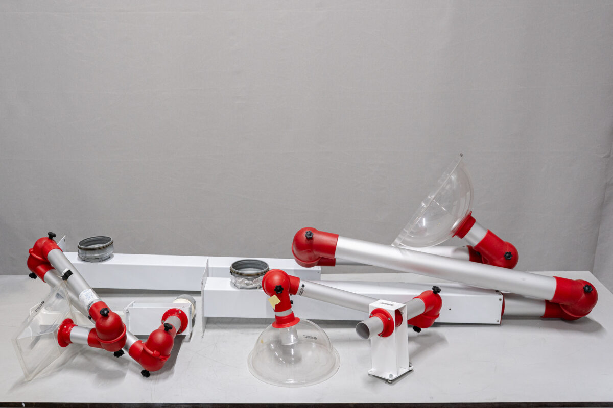 Ein Alsident Absaugarm ist ein beweglicher, freistehender Absaugarm, der an Tischen, Wänden oder Decken montiert werden kann. Er ermöglicht die direkte Absaugung kontaminierter Luft – Dämpfe, Gase, Rauch, Staub oder Chemikalien – an der Quelle. Dank seiner Gelenke und der feder- bzw. galvanisch gedämpften Konstruktion ist der Arm äußerst flexibel und einfach zu positionieren und bleibt wartungsfrei an Ort und Stelle.