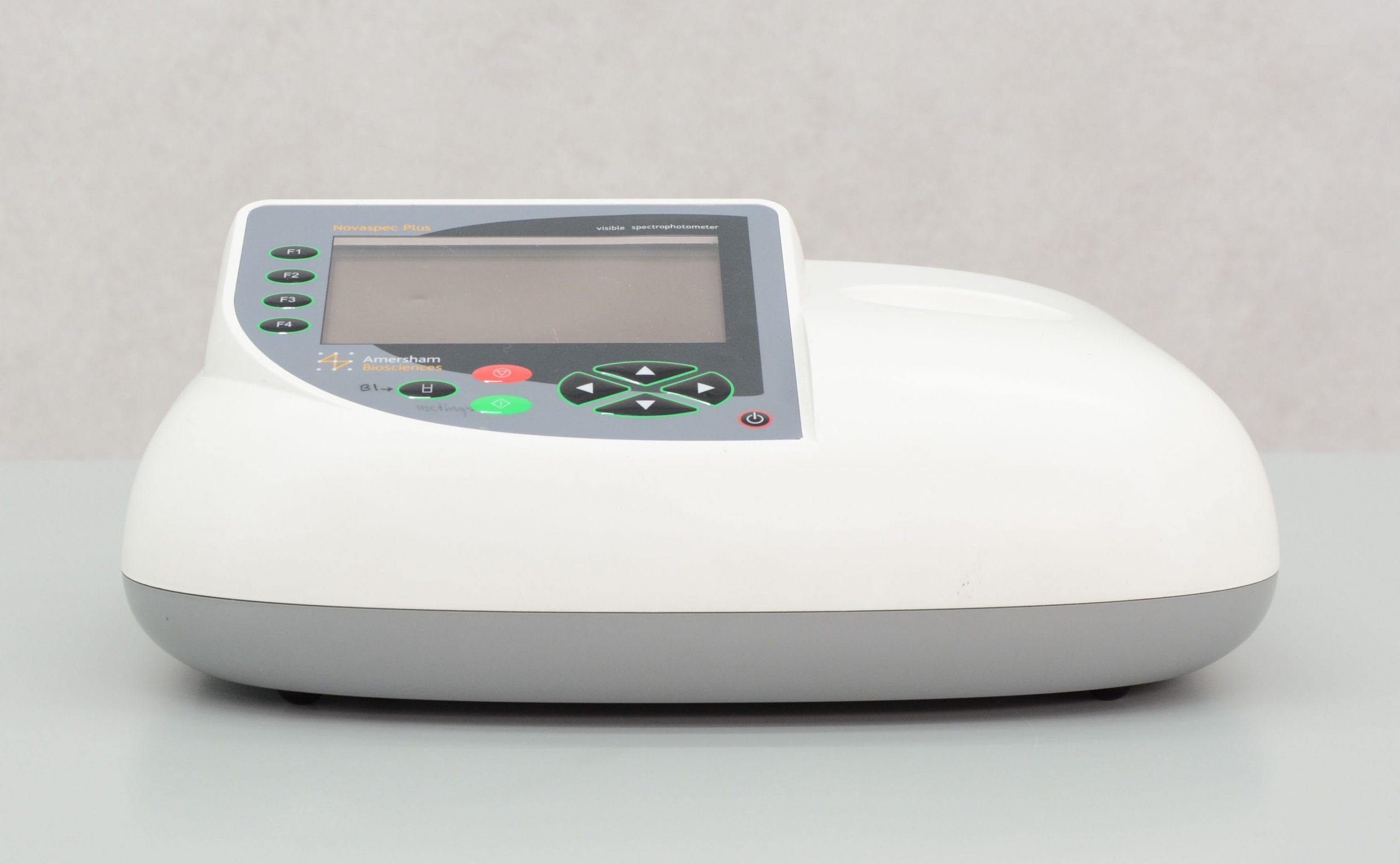 Das Spektralphotometer der Marke Amersham Typ Novaspec Plus ist hervorragend für Absorptions-, Transmissions- und Konzentrationsmessungen in den sichtbaren Spektren geeignet. Darüber hinaus enthält das Amersham Novaspec Plus gespeicherte Methoden zur Bradford-, BCA-, Biuret- und Lowry-Proteinquantifizierung. Darüber hinaus können 99 Methoden im Amersham Novaspec Plus gespeichert werden. Dieses Spektralphotometer ist mit einer RS232-Schnittstelle zum Anschluss eines PCs zur Datenübertragung und zum Drucken von Daten ausgestattet.