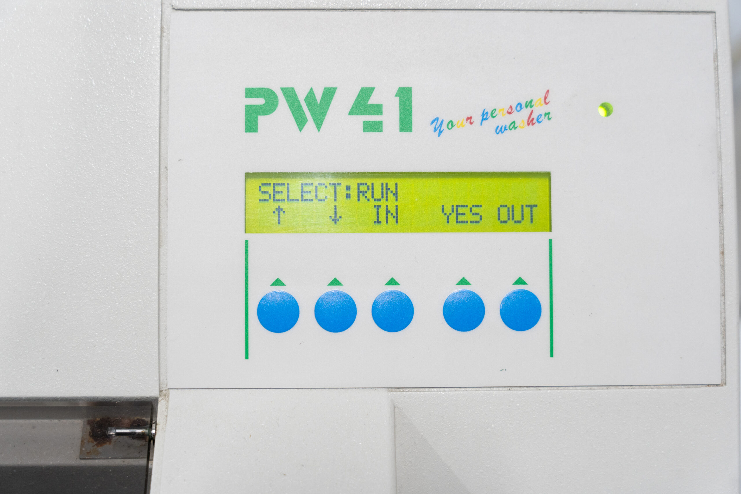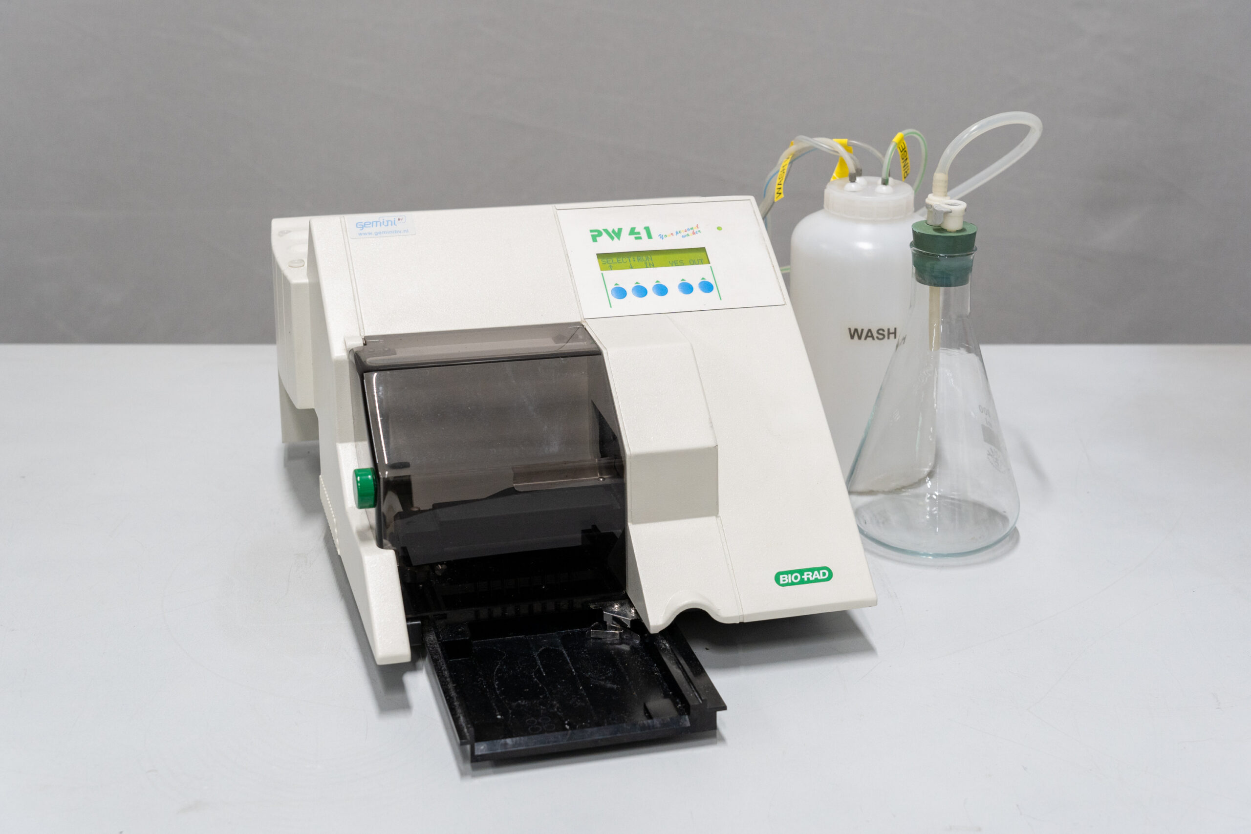 Der 96 Well Plattenwäscher der Marke Bio-Rad Typ PW41 ist ideal ausgestattet mit einer integrierten Vakuum- und Dosierpumpe und einem 16-Kanal-Waschkopf. Darüber hinaus ist diese Unterlegscheibe für die Verwendung mit 96-Well-Flach-, U-Boden- oder V-Bodenplatten ausgelegt. Darüber hinaus können die Kopfhöhen für die Dosierung und das Absaugen durch den Benutzer mit vertikaler und horizontaler Nadelpositionierung in der Vertiefung (0,1 mm Genauigkeit) eingestellt werden. Diese Unterlegscheibe bietet verschiedene Methoden und jeausgewählte Methokann bis zu neun Mal hintereinander wiederholt werden. Das macht diese Unterlegscheibe ideal für verschiedene 96-Well-Plattenassays.