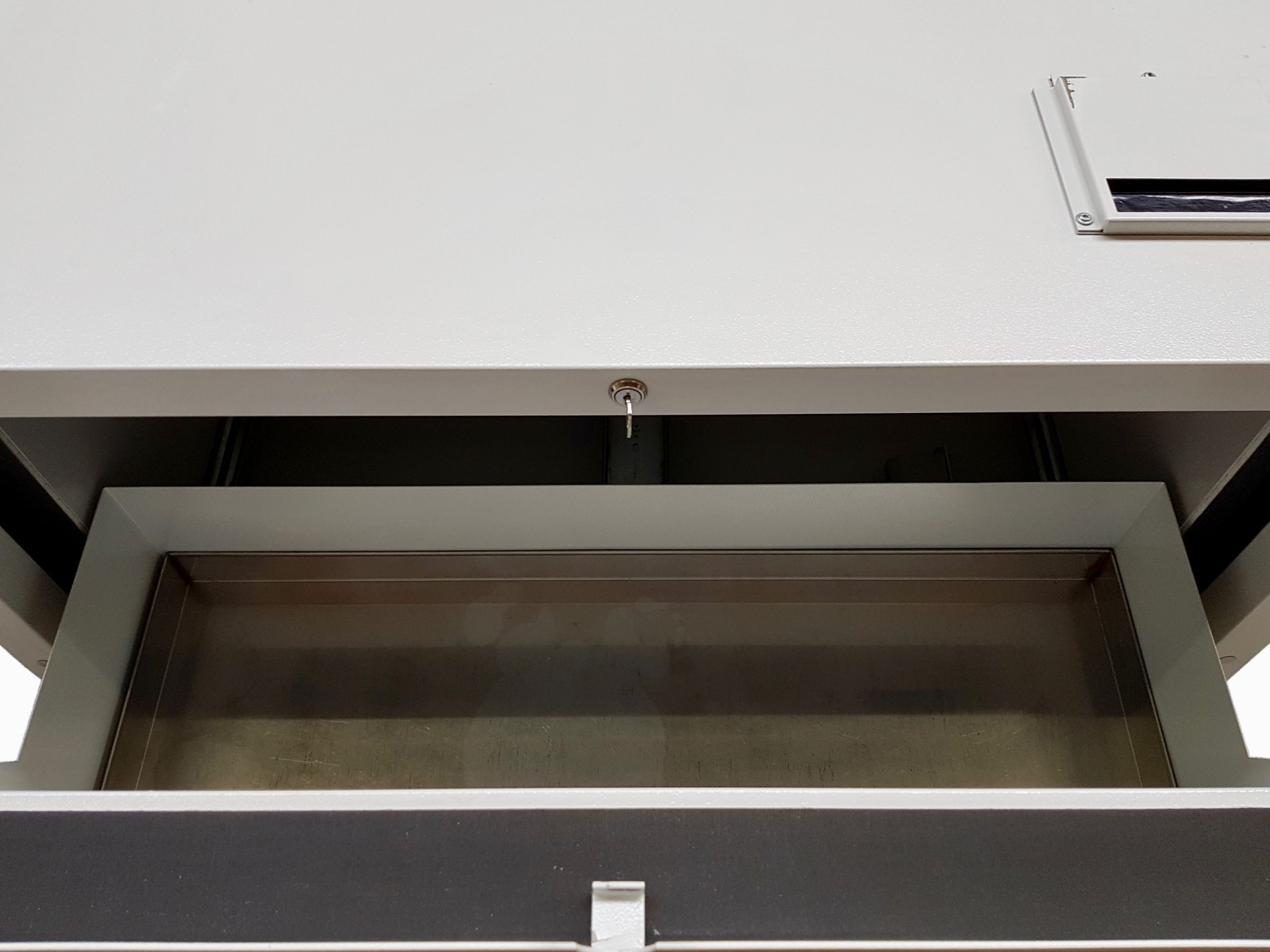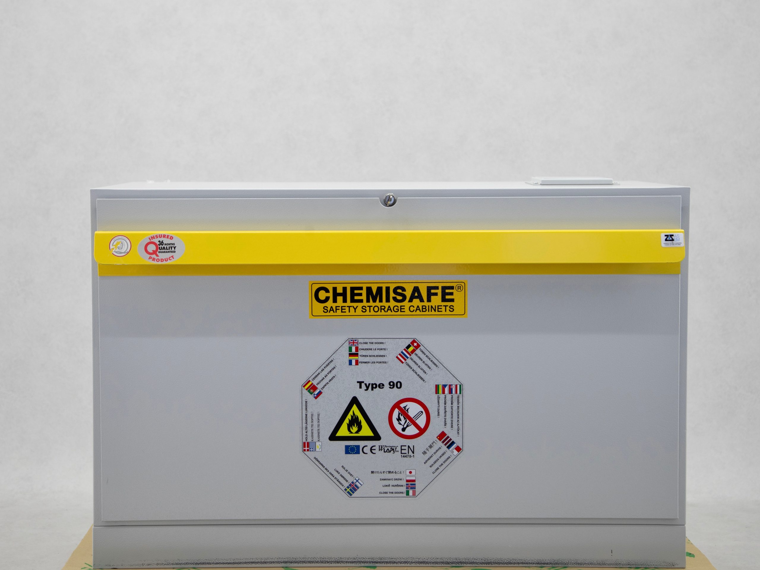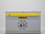 Der feuerfeste Sicherheitsschrank der Marke Chemisafe Typ T90 ist für die sichere Lagerung brennbarer Stoffe ausgelegt.