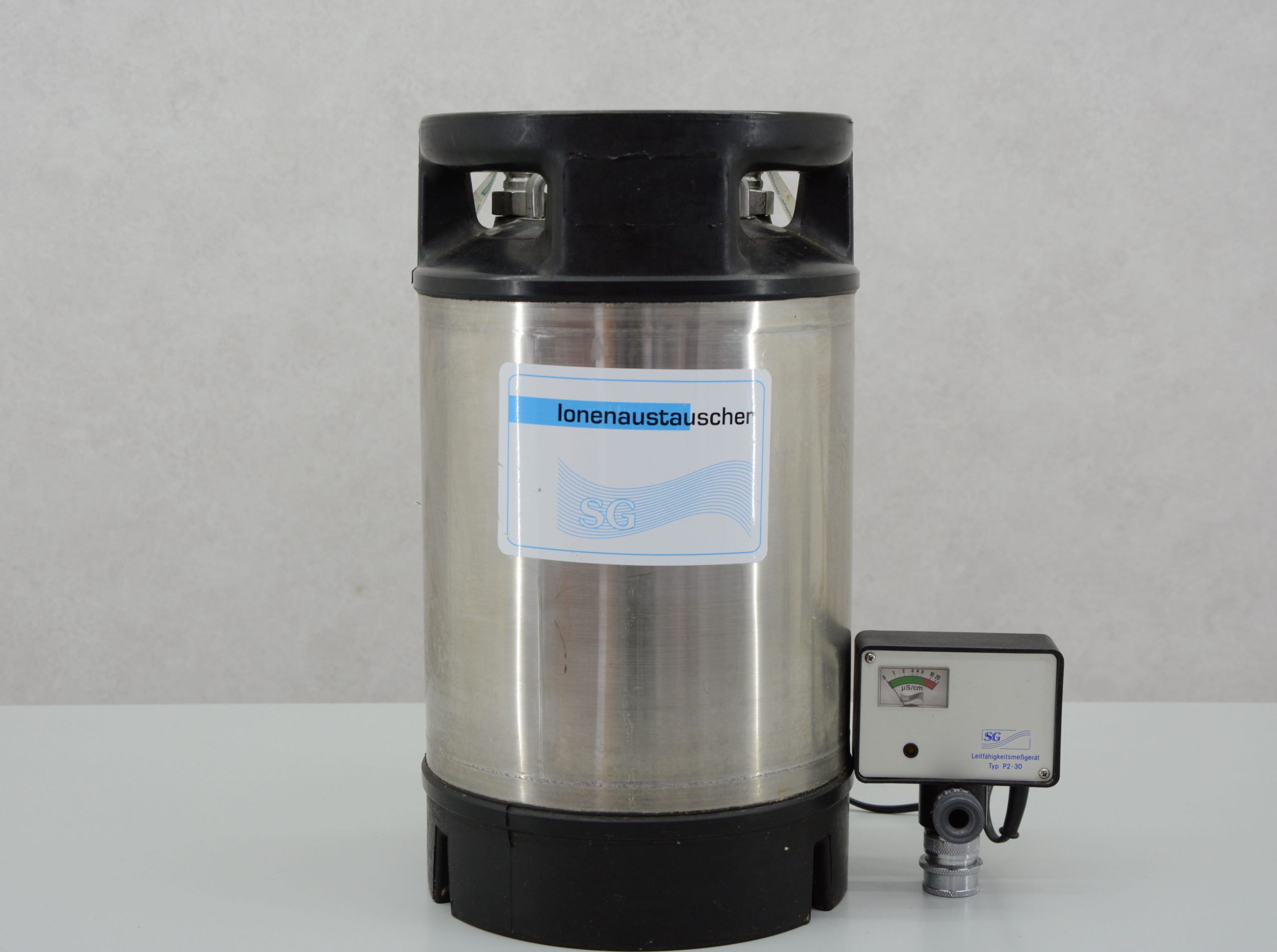 Die demi Wasserpatronen der Marke Evoqua Typ SG-2000 SK sind ideal für die Reinwasserversorgung von Reinstwassersystemen, Laborwaschmaschinen, Autoklaven und Klimakammern. Zwei der drei demineralisierten Wasserpatronen wurden regeneriert und mit einem Leitfähigkeitsmesser ausgestattet.