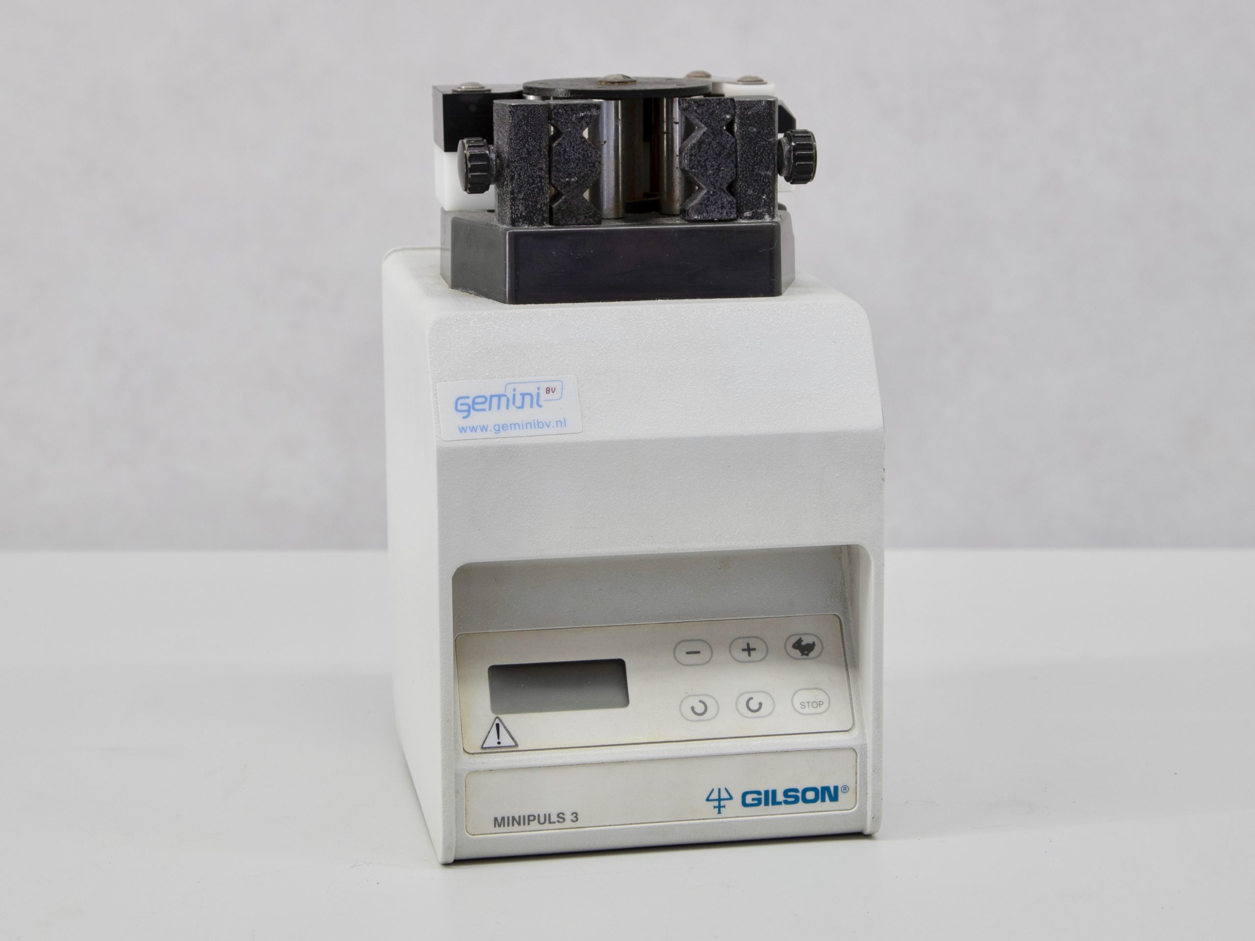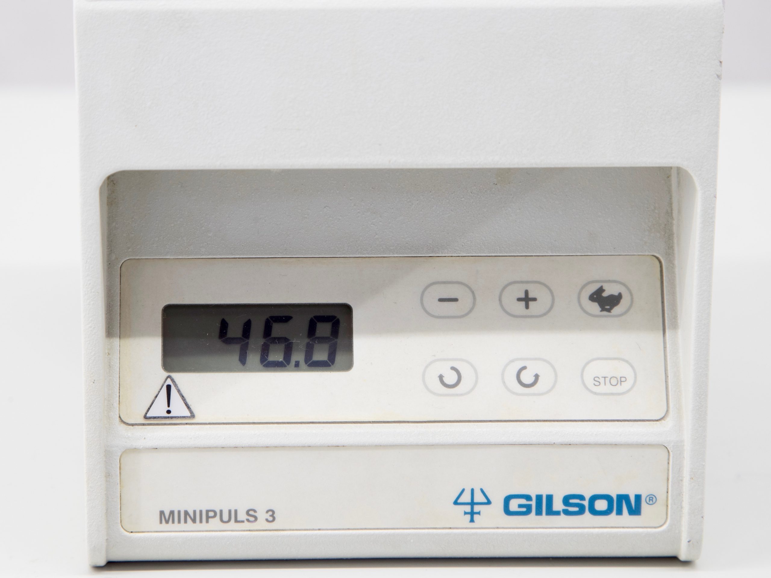 Die Zweikanal-Schlauchpumpe der Marke Gilson Typ Minipuls 3 ist ideal für den Transport von Flüssigkeiten, wobei sowohl die Flüssigkeit als auch die Pumpe nicht verunreinigt werden. Der Gilson Minipuls 3 eignet sich zur Abgabe von Kulturmedien, Puffern und Lösungen.