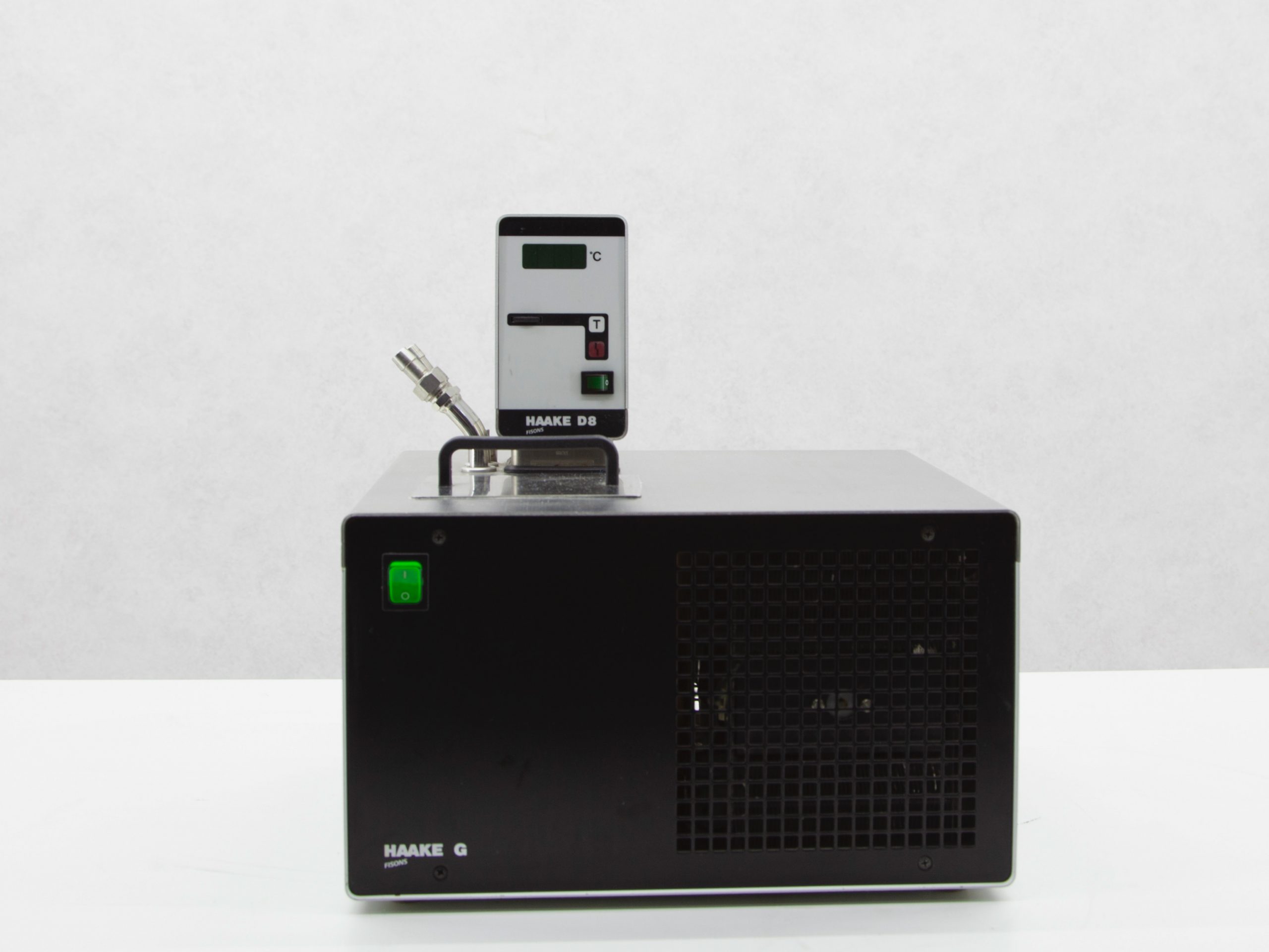 Das Kühlwasserbad der Marke Haake Typ G und Thermostat D8 ist ideal zum Umwälzen von Flüssigkeiten mit konstanter Temperatur durch externe geschlossene Systeme wie Photometer, Refraktometer, Viskosimeter, Polarimeter und Spektralphotometer. Darüber hinaus kann der Haake G verwendet werden, um verschiedene Proben auf der richtigen Temperatur zu halten.
