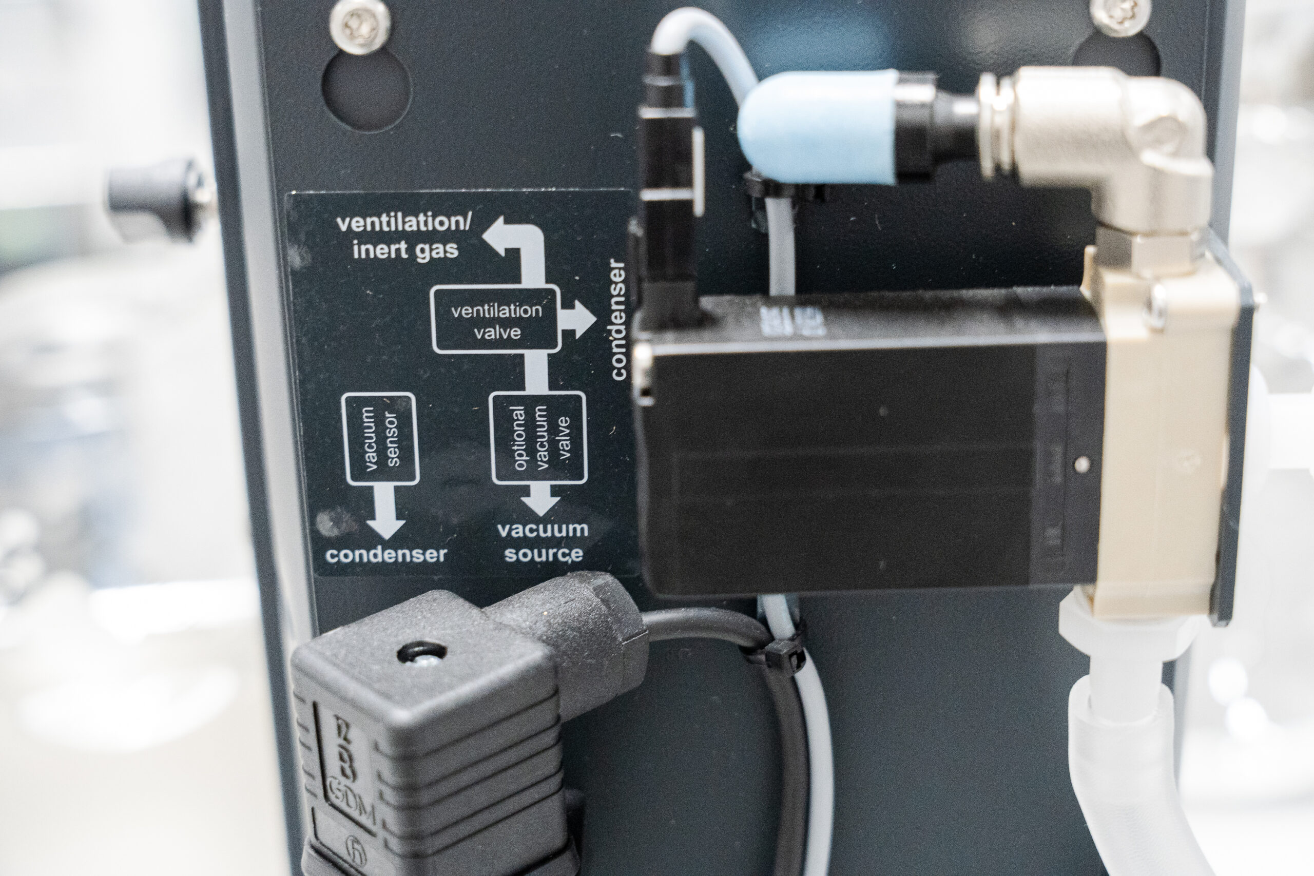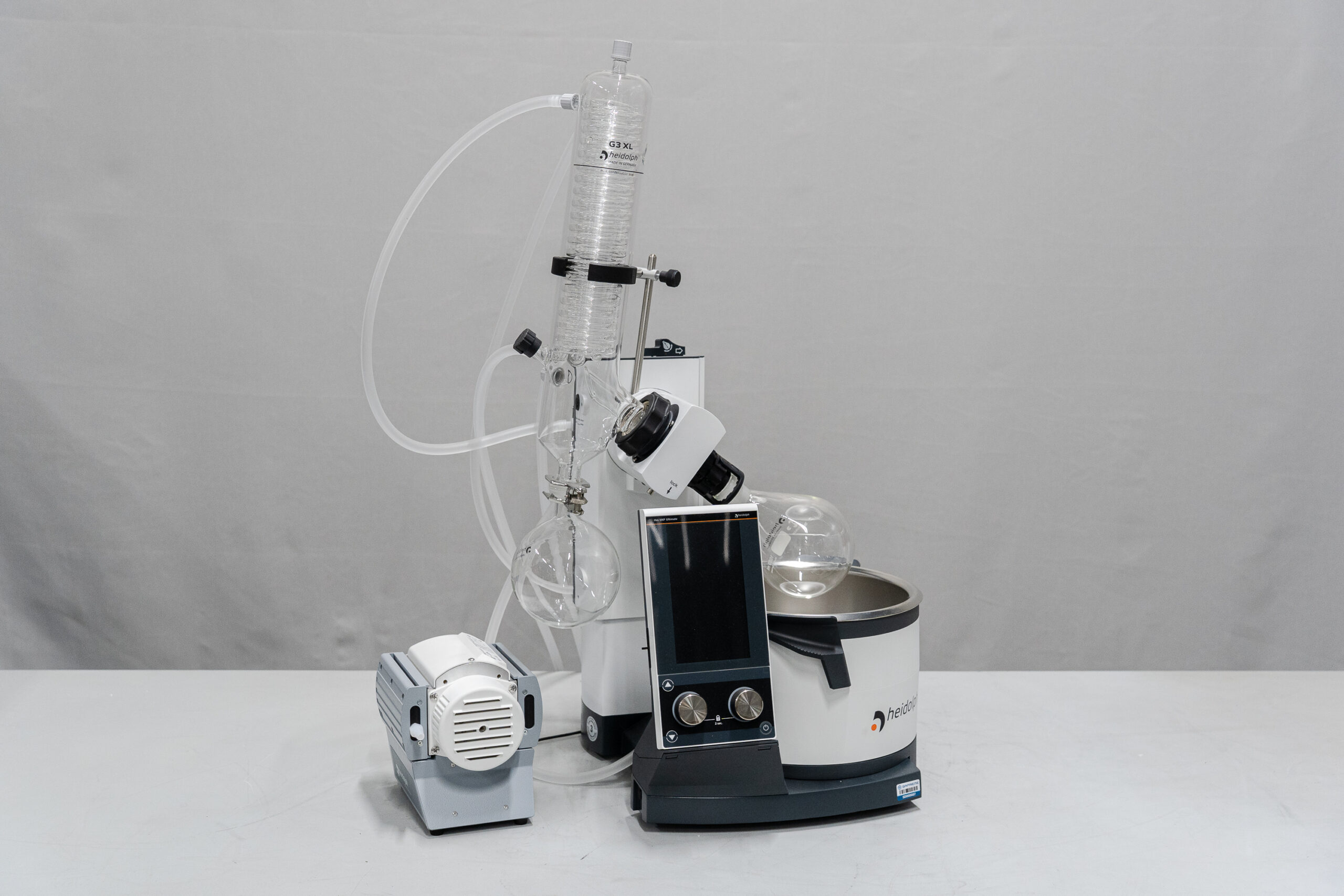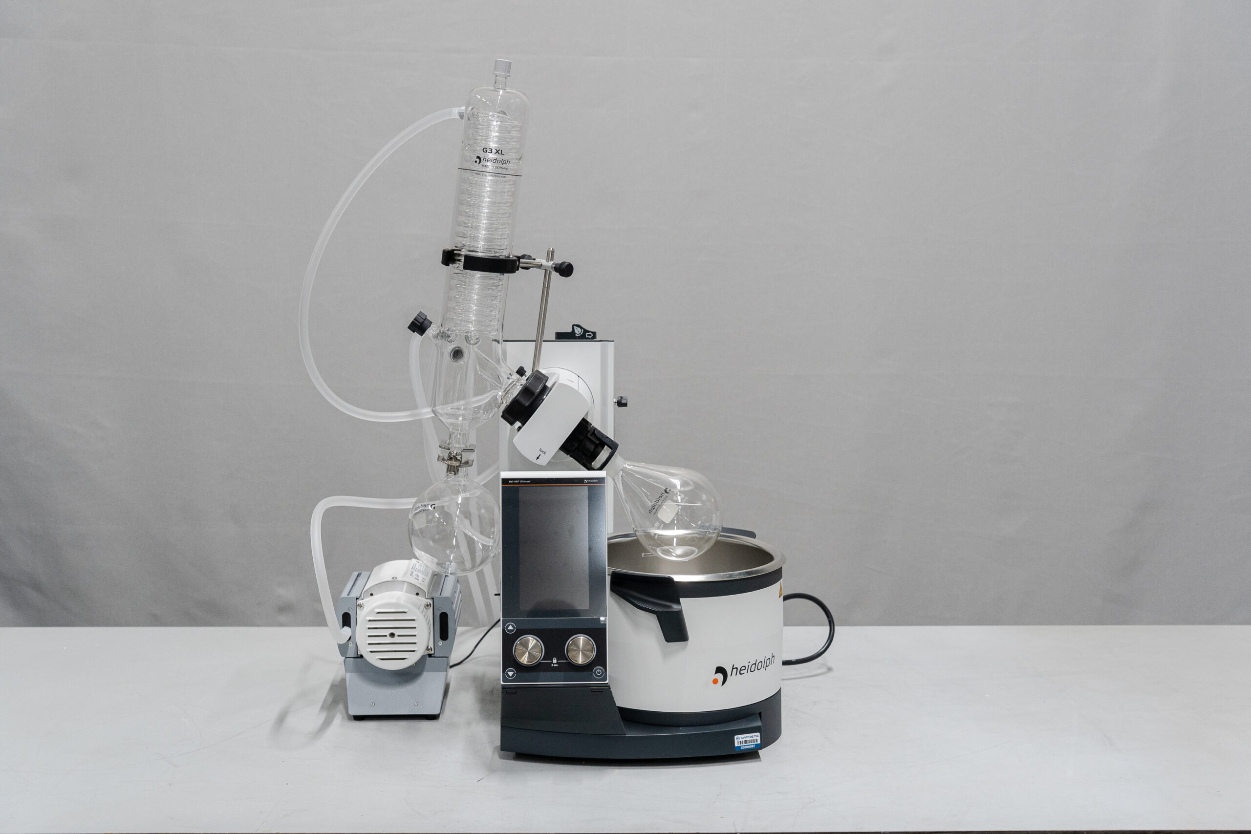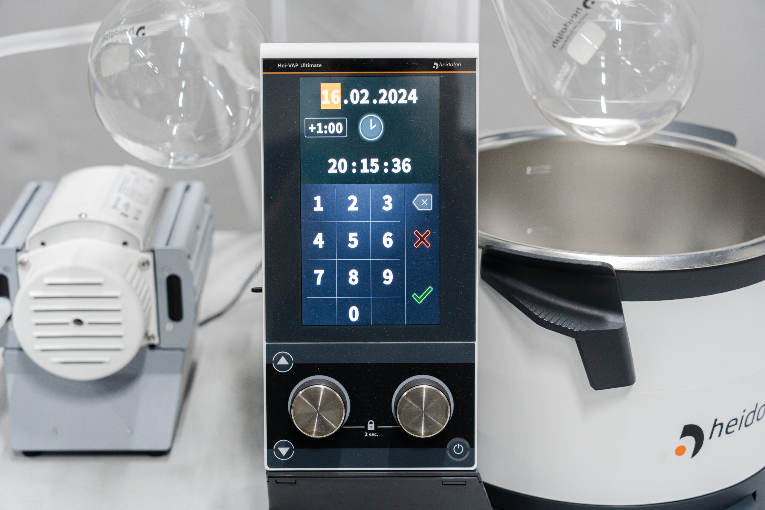 Heidolph Hei VAP Ultimate – Chill 600 Rotationsverdampfer mit Umlaufkühler, mit Rollen zur Platzierung unter dem Labortisch. Mit übersichtlichen Bedienelementen, großem LED-Display, Folientastatur und Sichtfenster zur Füllstandskontrolle.