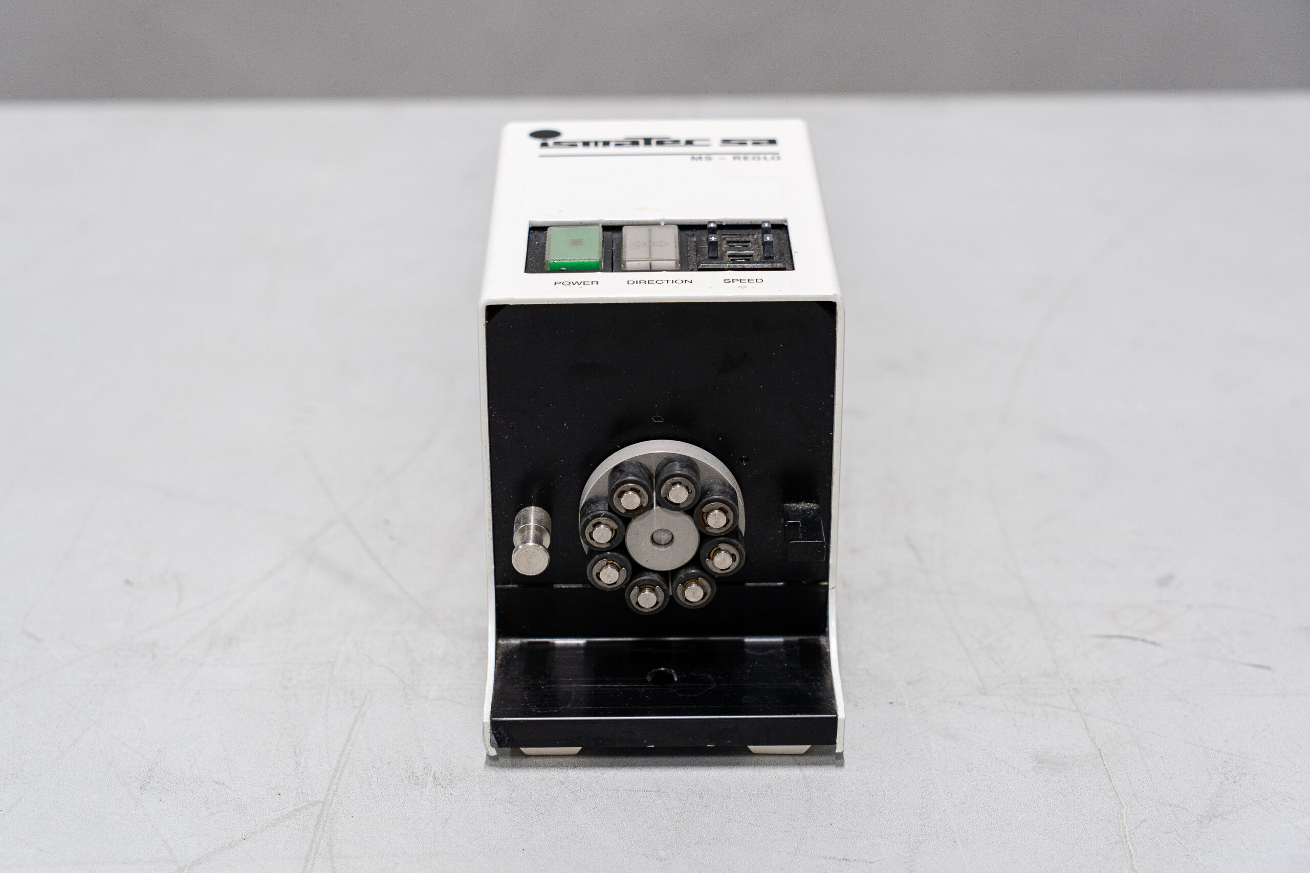Die Schlauchpumpe MS-1 von Ismatec fördert Flüssigkeiten mithilfe eines rotierenden Pumpenkopfes mit Rollen, die einen Schlauch zusammendrücken und so die Flüssigkeit verdrängen. Aufgrund ihrer Flexibilität sind diese Pumpen in Laboren, Prozess- und Industrieumgebungen weit verbreitet: Nur der Schlauch kommt mit der Flüssigkeit in Berührung, was die Reinigung, den Austausch und die chemische Beständigkeit vereinfacht. Nicht vollständig – die Klemme fehlt.