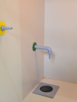 Außerdem ist dieser Abzug mit einem Ventilator, zwei Wandsteckdosen, einem Abfluss, einer Gasversorgung und einer Wasserversorgung ausgestattet.
