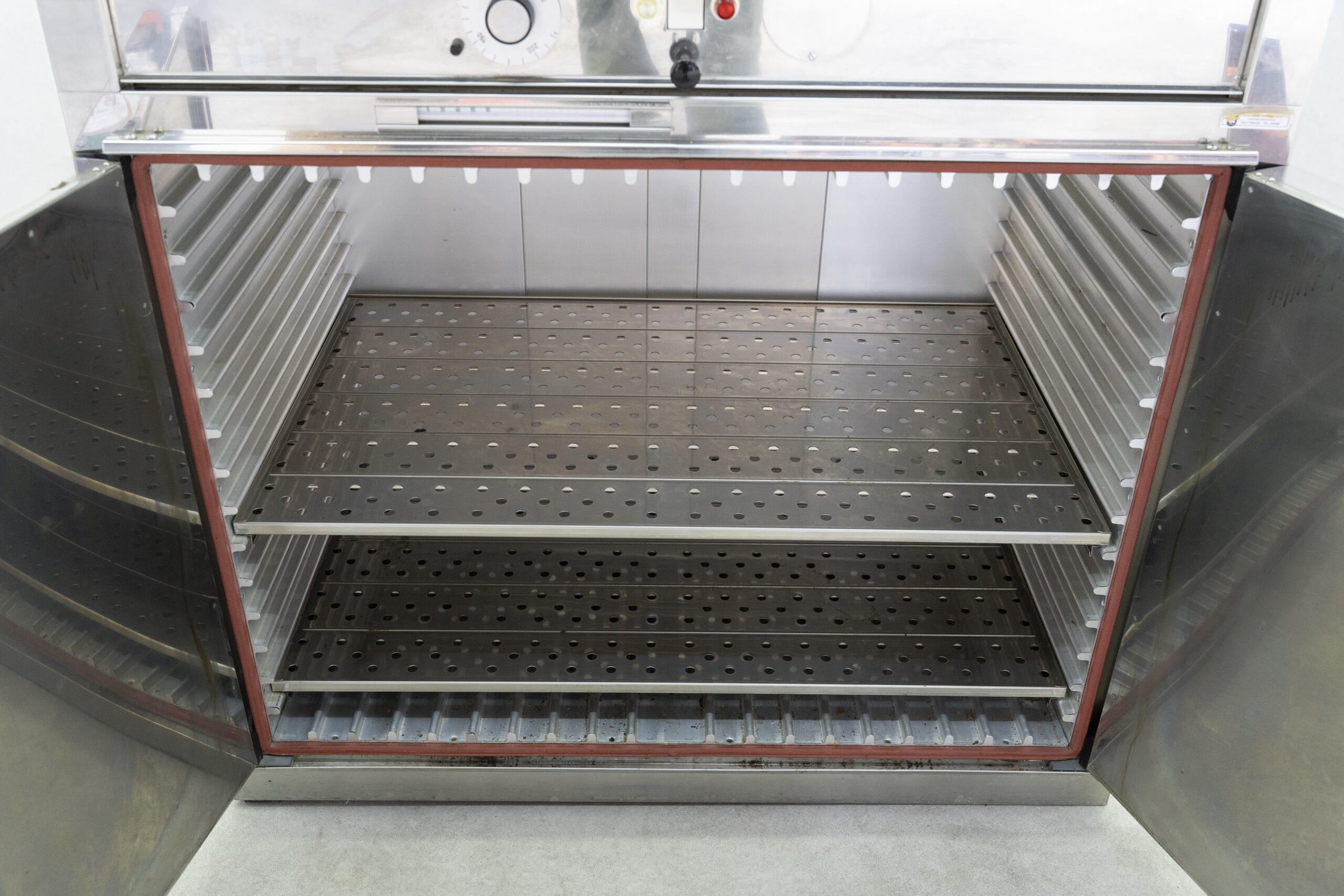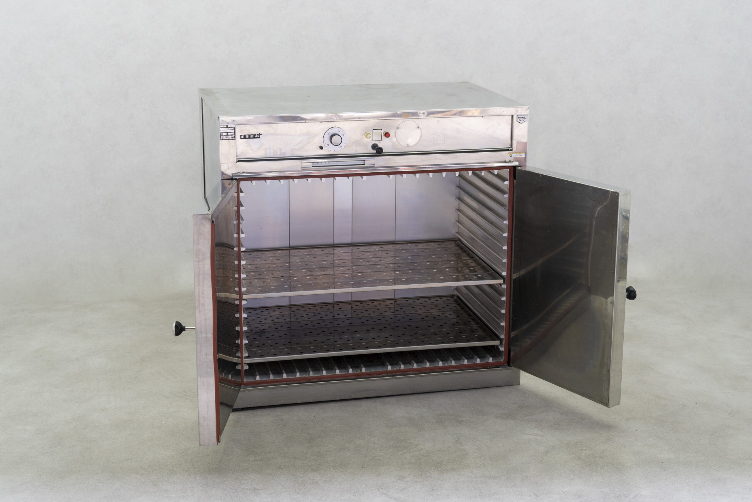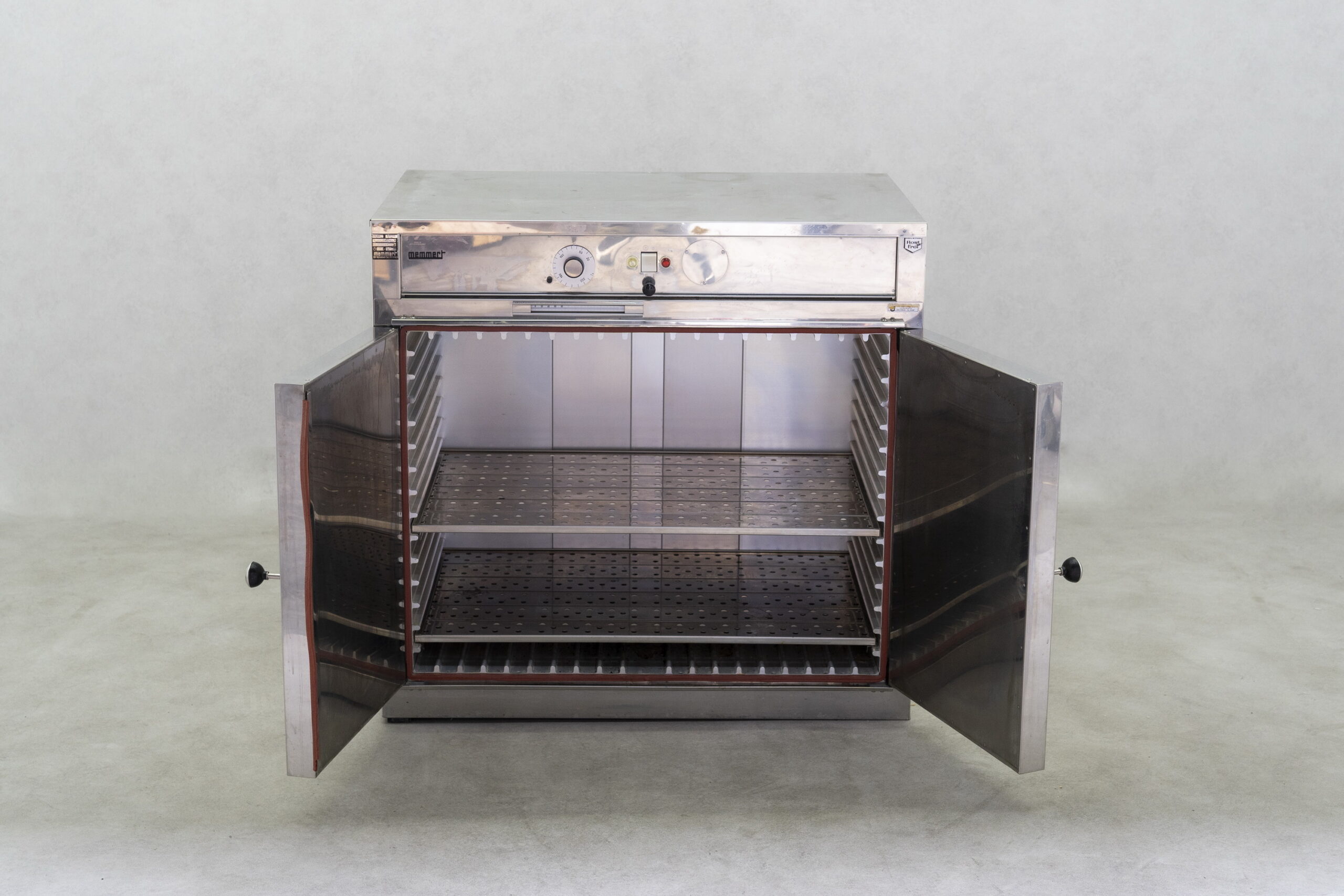 Dieser gebrauchte Laborschrank / Trockenschrank von Memmert verfügt über natürliche Konvektion und lässt sich mit einem Bedienknebel einstellen.