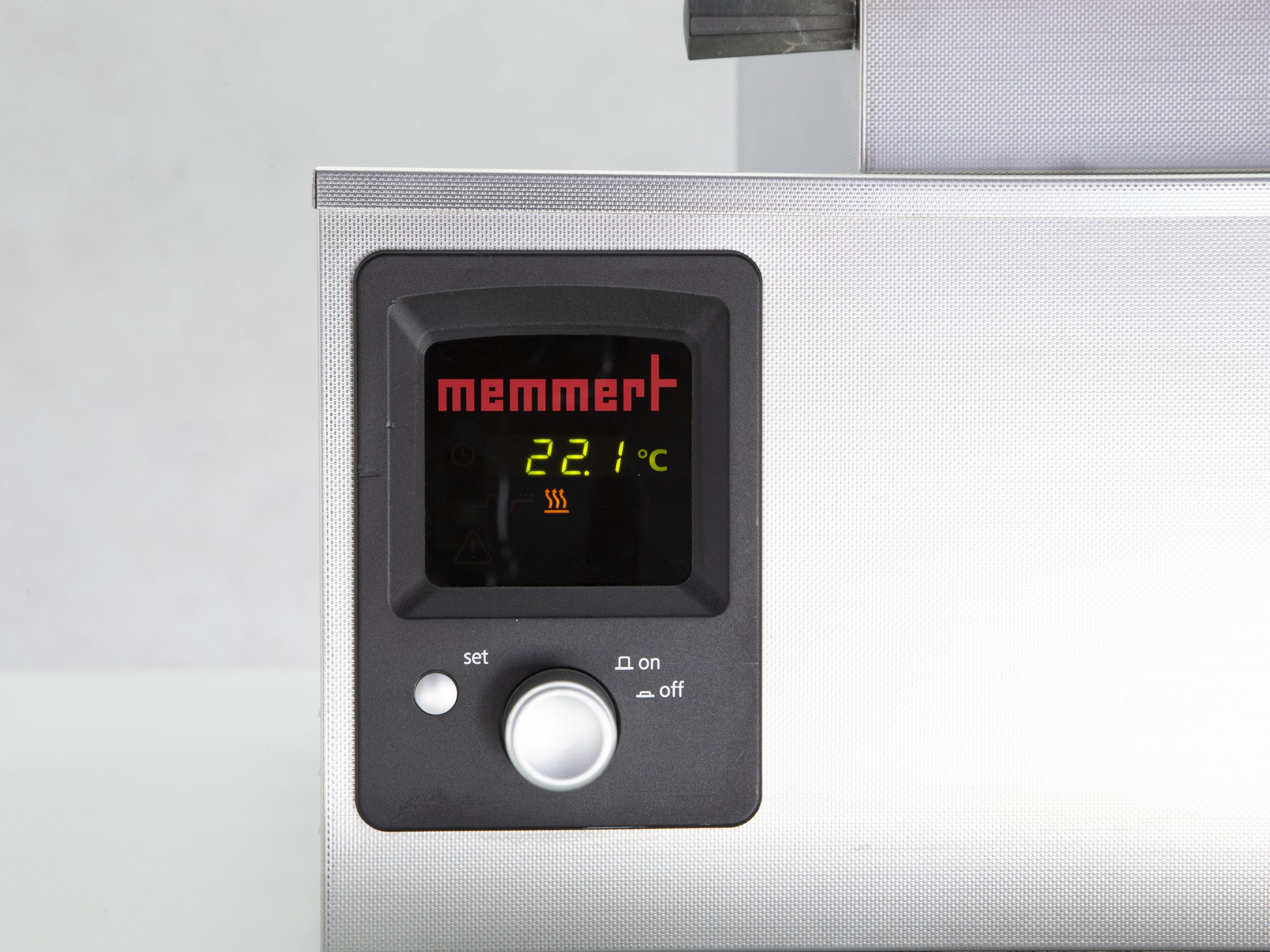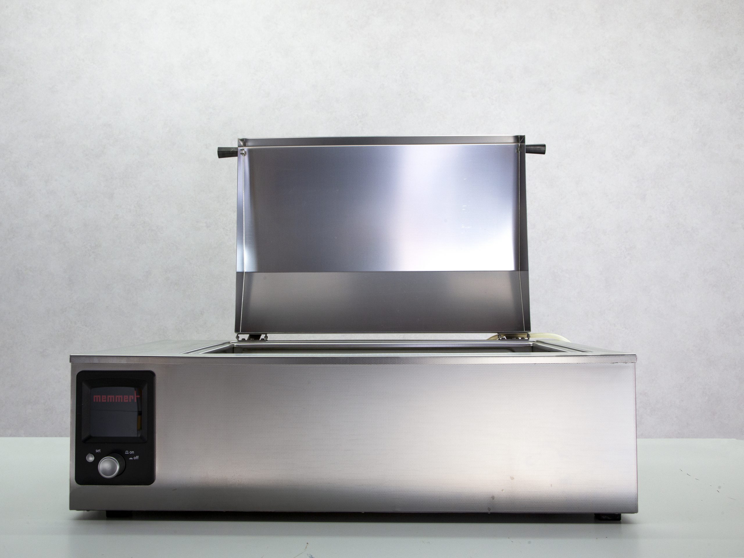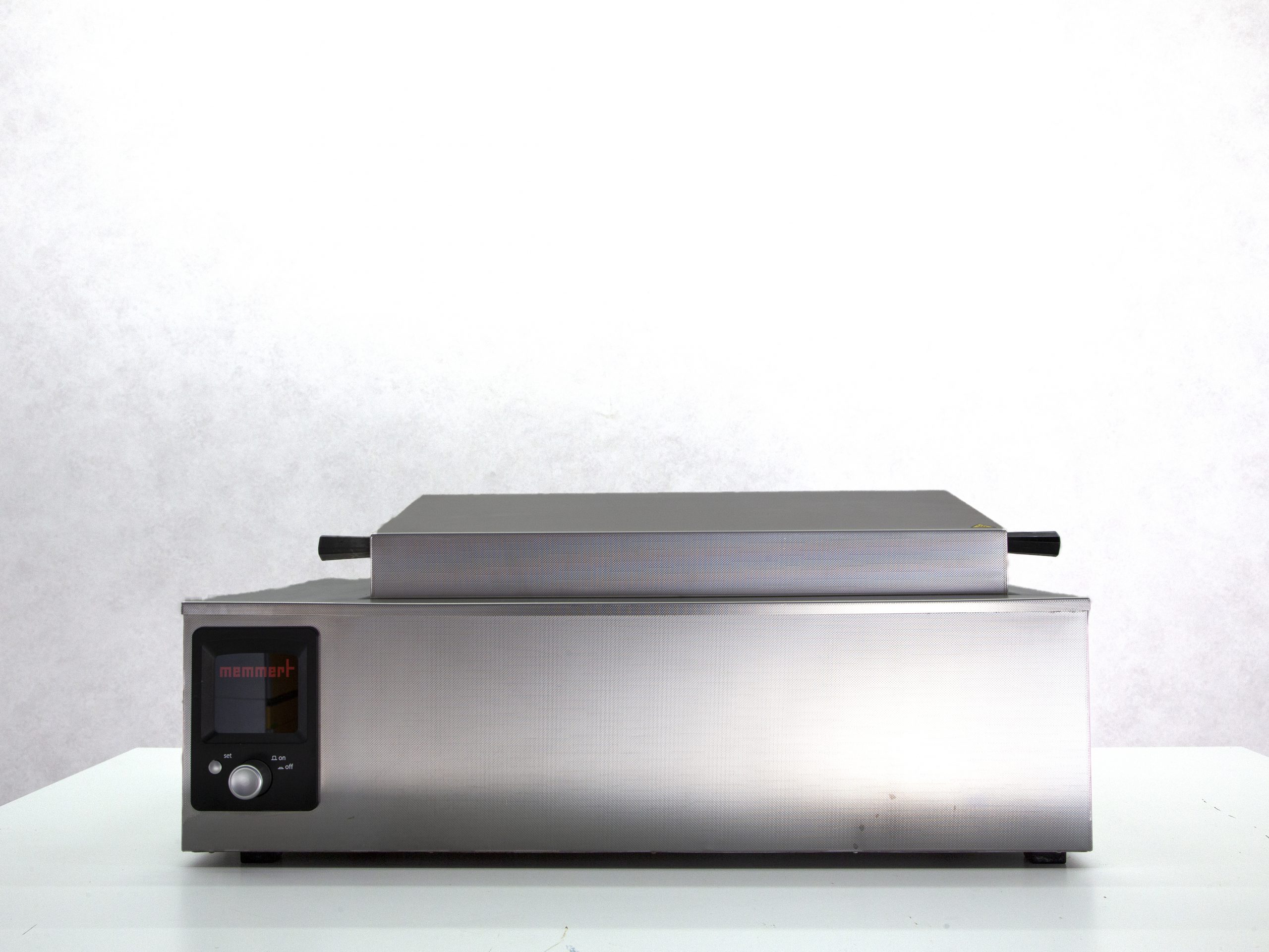 Das Wasserbad der Marke Memmert Typ WNB29 zur Temperaturkontrolle von Proben und Medien, Auftauen von Proben und Medien, Inkubationen, Materialtests und Korrosionstests.