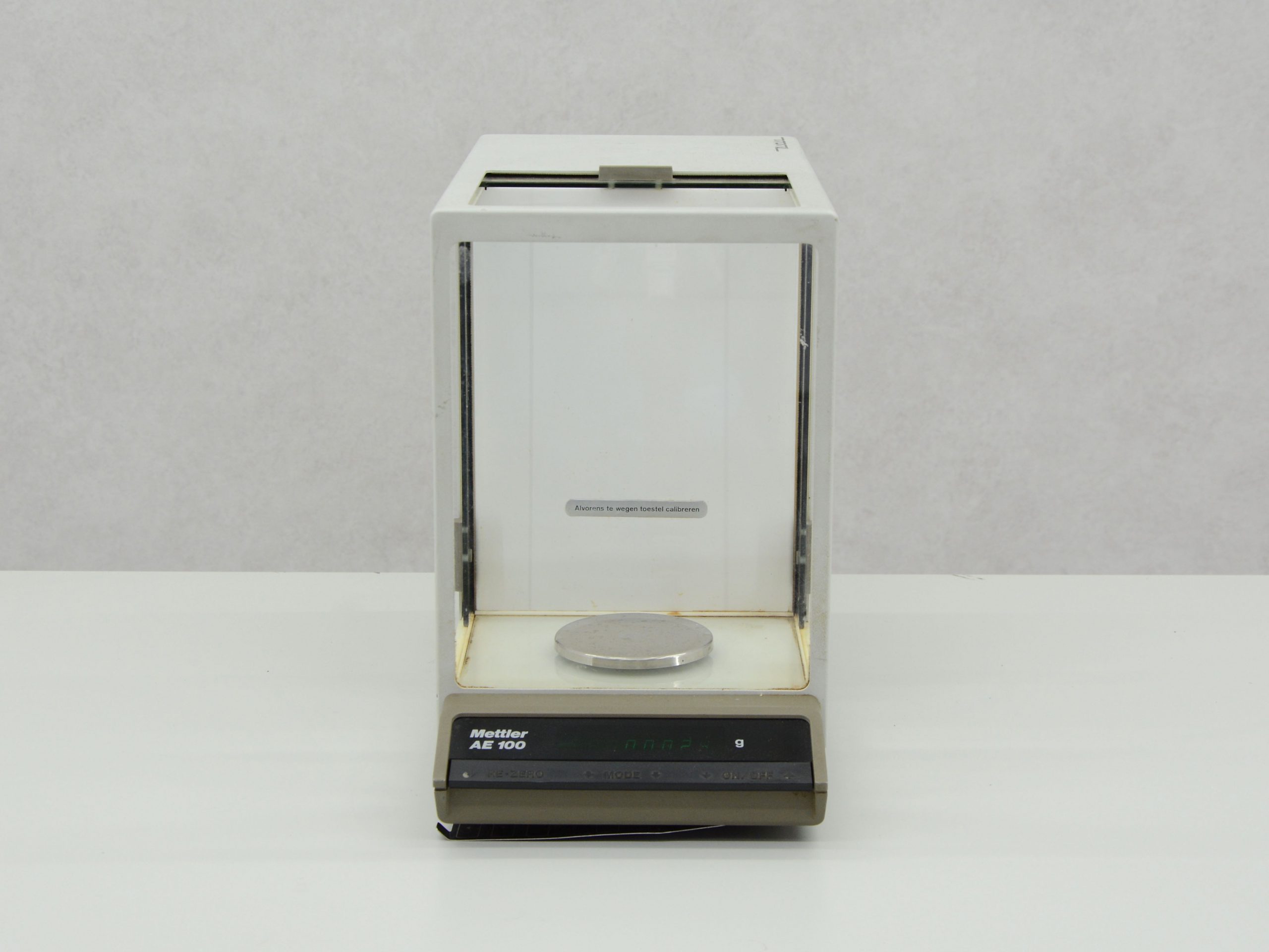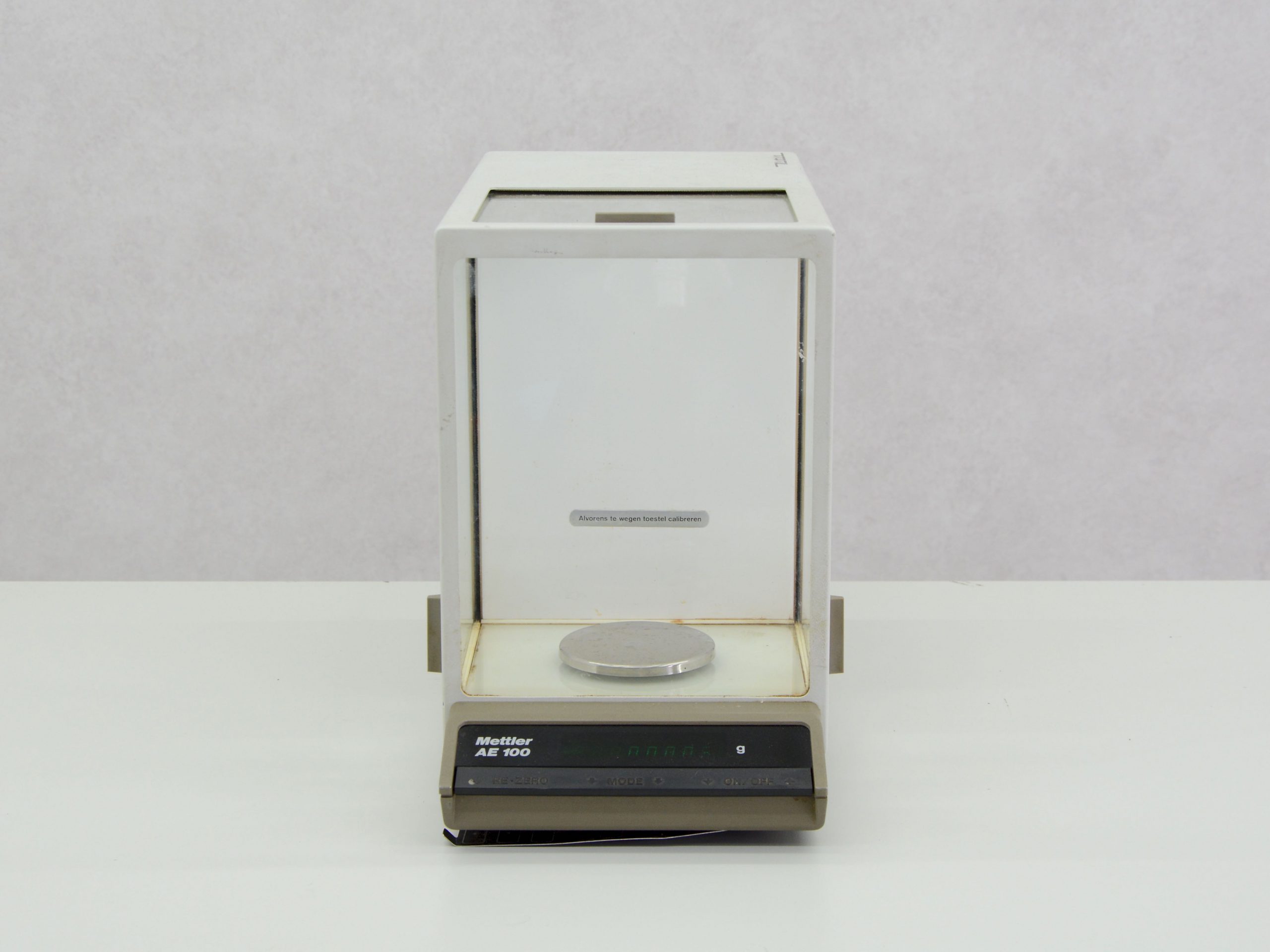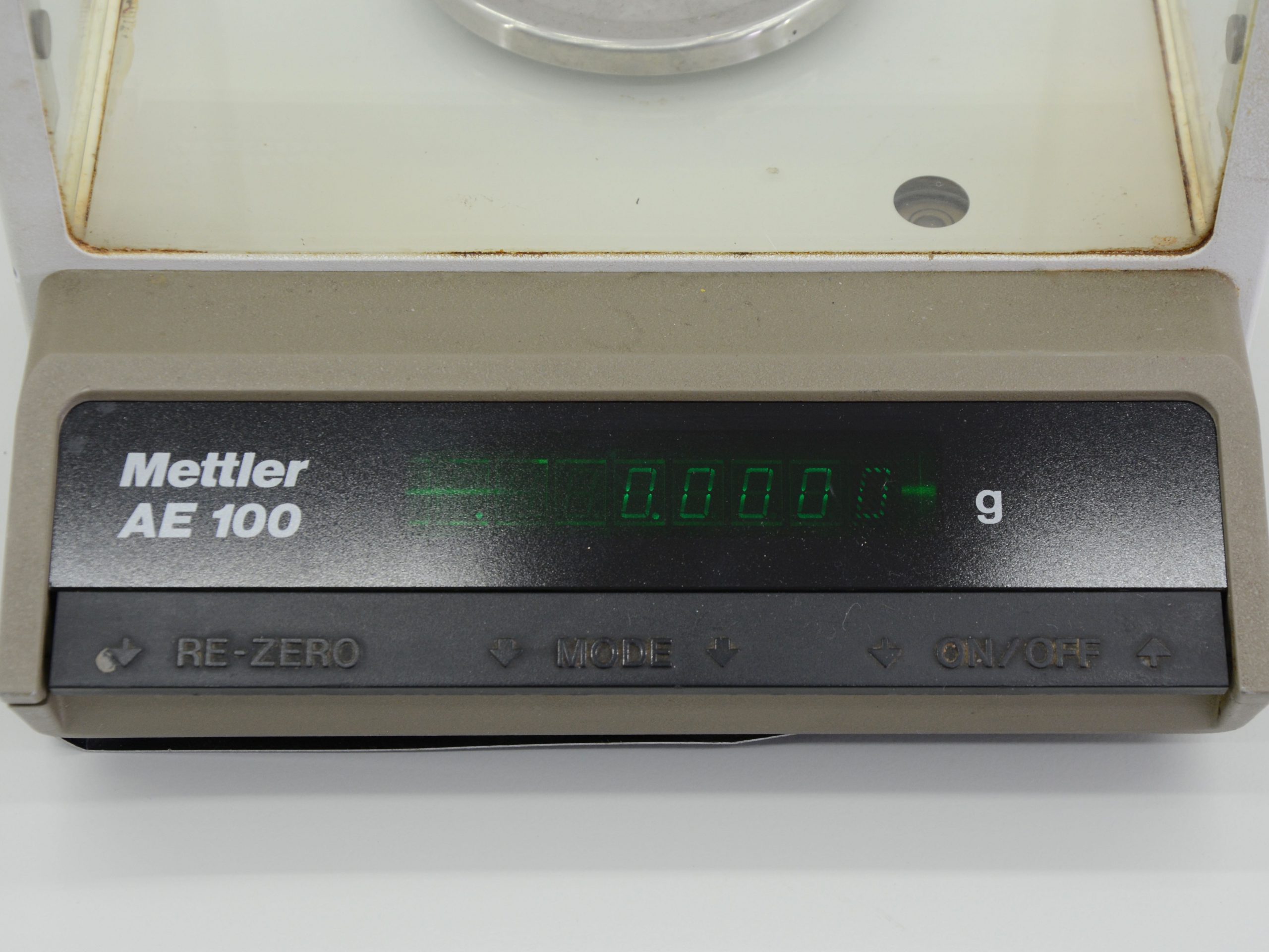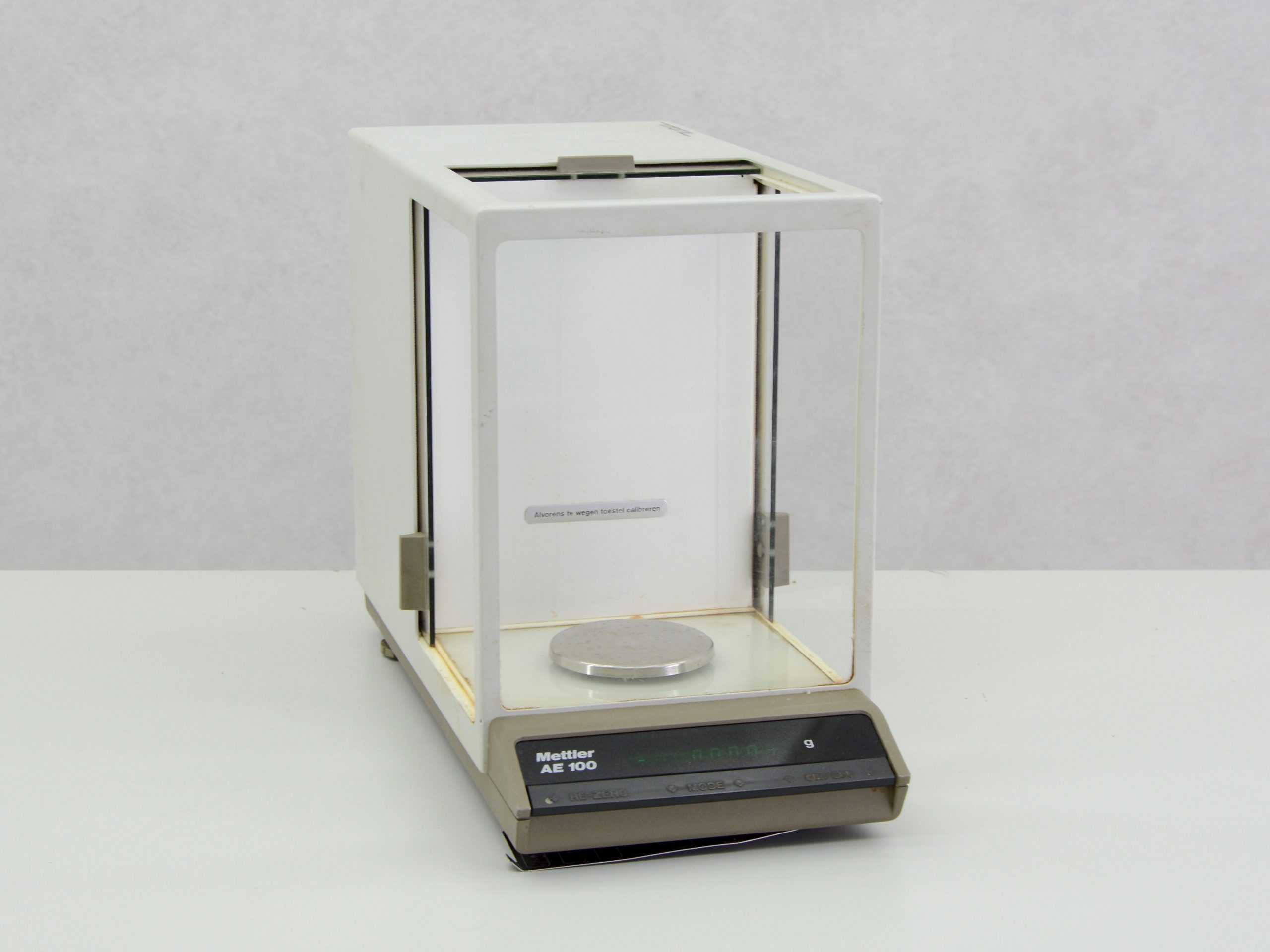 Die Analysenwaage der Marke Mettler Typ AE100 ist ideal für das genaue Wiegen verschiedener Proben mit einem Maximalgewicht von 109 Gramm.
