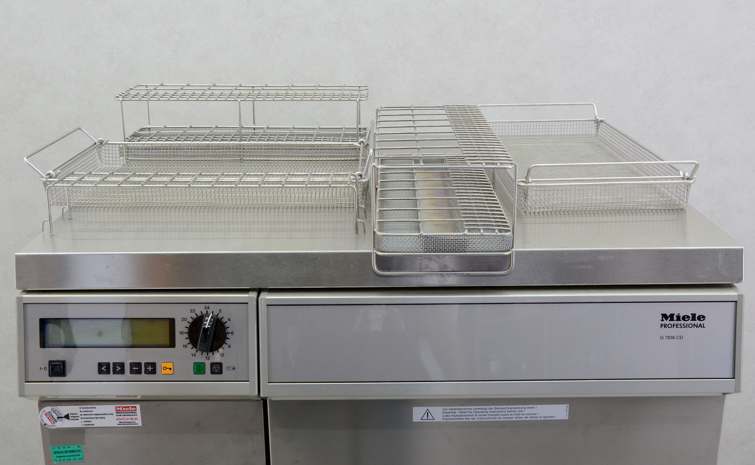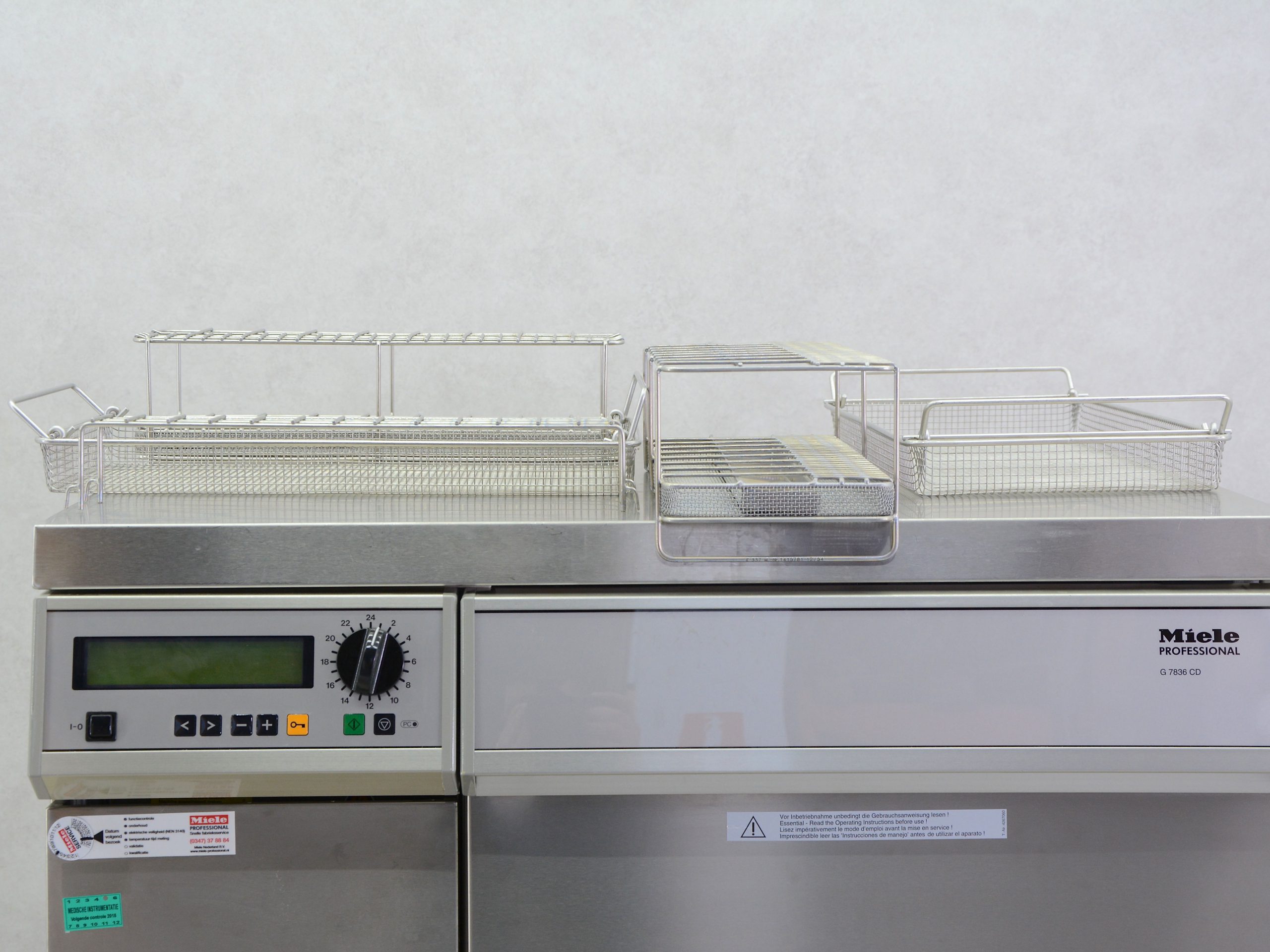 Der Spülmaschine der Marke Miele Typ G7836CD ist ideal zum Reinigen und Desinfizieren einer Vielzahl von Medizin- und Laborprodukten. Außerdem ist dieser Spülmaschine mit zwei Spülmaschinenkörben ausgestattet.