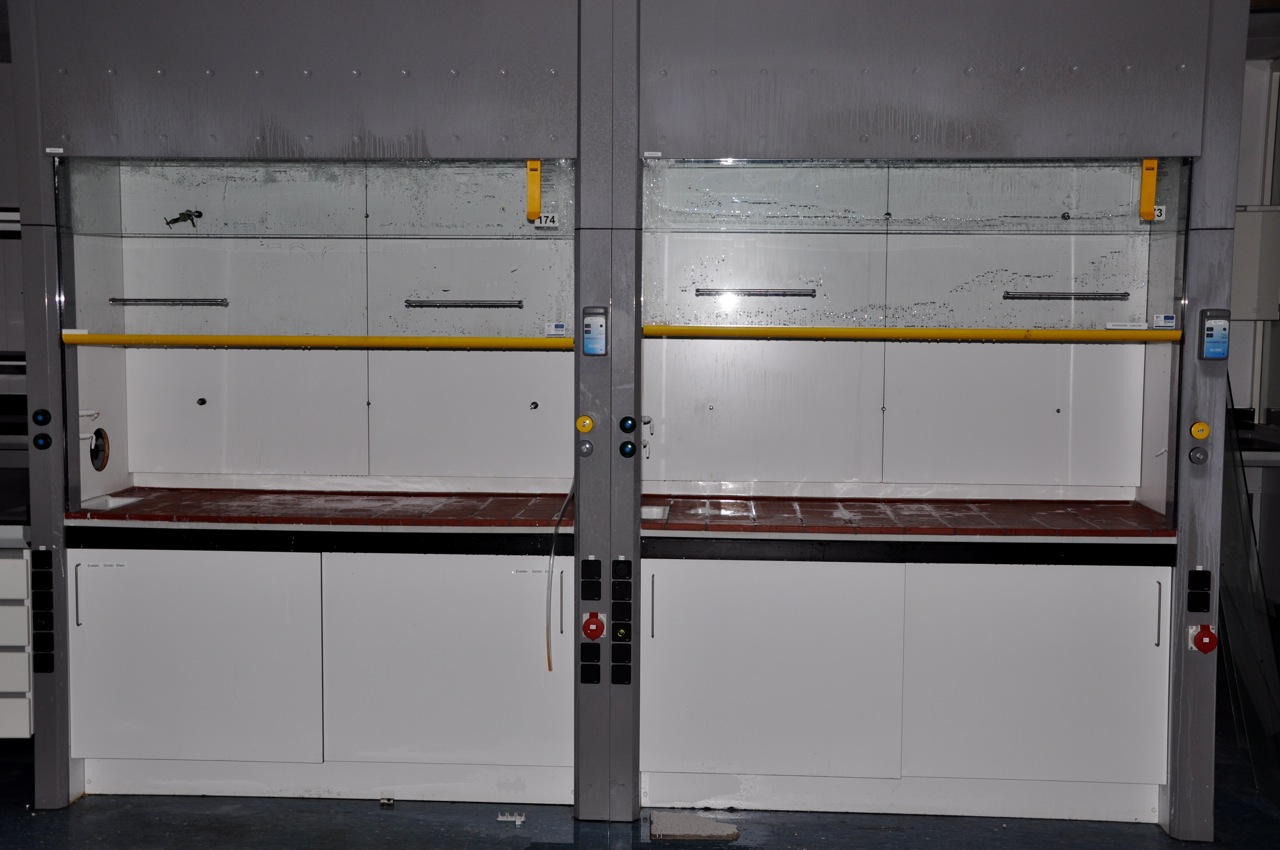 Labor Abzüge von S+B (splusb), Typ Smar System mit Tischplatte aus Fliesen.